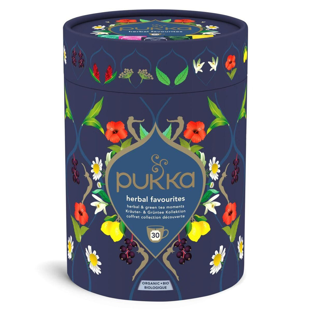 Dit geschenk biedt een prachtig vormgegeven selectie van enkele van Pukka's meest populaire theesoorten. Met in totaal 30 theezakjes in 5 heerlijke smaken, kun je genieten van de rustgevende aroma's en de heerlijke smaak van Pukka's biologische kruidentheeën, die uitsluitend gemaakt zijn van de hoogste kwaliteit biologische kruiden en op verantwoorde wijze zijn ingekocht.