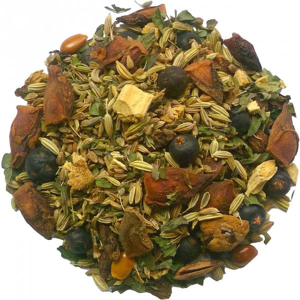 anijs, zoethout, steranijs, nana mint, jeneverbessen, moeras spirea, braambes bladeren.